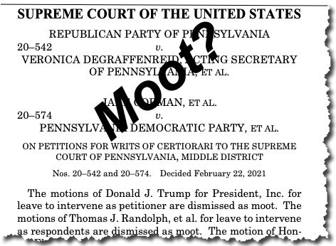 NY Times: “The Supreme Court announced on Monday that it would not hear an appeal from Pennsylvania Republicans who sought to disqualify mailed ballots in the 2020 presidential election that arrived after Election Day..”